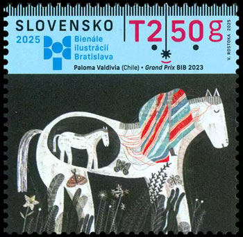 В 2025 году проходила 30-я юбилейная Биеннале иллюстраций в Братиславе - именно ей посвящена новая почтовая марка. На марке воспроизведена работа чилийской художницы Паломы Вальдивии (Paloma Valdivia). Она получила Гран-при на Биеннале в 2023 году за иллюстрации к книге «Книга вопросов» знаменитого чилийского писателя, лауреата Нобелевской премии по литературе Пабло Неруды.