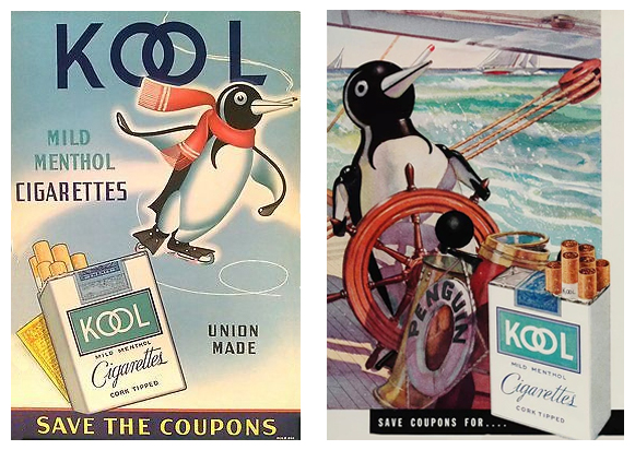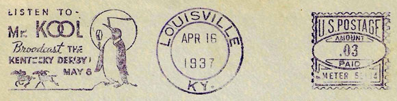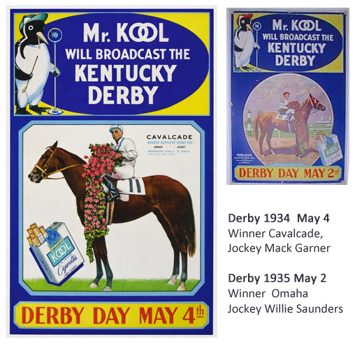 Сигареты марки "Kool" быстро стали флагманом компании, и именно этот бренд активно продвигался по радио, в том числе во время прямых эфиров с Кентукки Дерби. По архивным материалам журнала Broadcasting Magazine и сайта worldradiohistory.com удалось установить, что компания Brown & Williamson Tobacco Corporation выступала эксклюзивным спонсором трансляции Дерби, продвигая сигареты Kool с 1935 по 1942 годы. Пингвин Вилли приглашает на скачки Пингвин Вилли оказался идеальным воплощением для концепции «Kool» - он "прожил" более 30 лет. Его образ активно использовался в рекламе и сувенирной продукции, он же стал "голосом" радиоэфиров. Каждый год выпускались рекламные плакаты "Mr Kool will broadcast the Kentucky Derby": в верхней части был изображен пингвина Вилли в жокейской кепке с микрофоном в лапе, внизу крупное изображение победителя Дерби с указание клички лошади, имени жокея и владельца. Вместе со скачущими лошадьми появился пингвин Вилли и на франкировальных штемпелях компании Brown & Williamson Tobacco. Они анонсировали Кентукки Дерби и приглашали всех желающих стать слушателями прямого эфира с мистером Кулом.