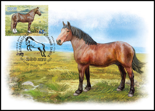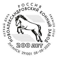 Лошадь, преодолевающая препятствие, памятный текст: Новоалександровский конный завод - 200 лет